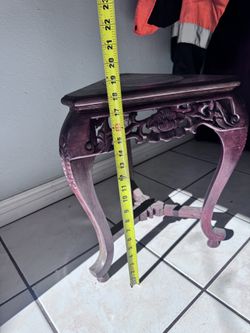 Vintage Chinese Triangular Rosewood Corner Table - Carved Floral Apron & Marble Insert Top - Elegant Accent Piece!$30City Of Industry, CA