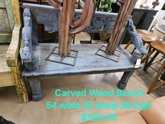 Bench Blue Carved Wood We are located at 2811 East Bell road. Another Time Around Furniture.