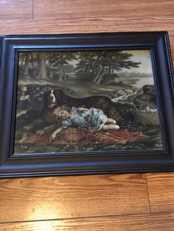 Beautiful old antique print 26” X 23” Wall art child with dog$25Modesto, CA
