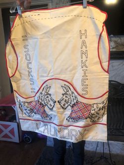 Vintage Embroidered Scottie dog laundry Holder With Pockets 27 inches high 22 inches across$10Modesto, CA