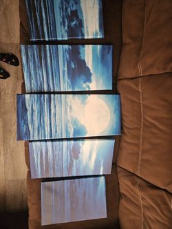 Blue Clouds With Moon 5 Piece Painting $40Albuquerque, NM