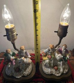 Juego Lamparas Antiguas Porcelana Bronce Pareja Época $50Hialeah, FL