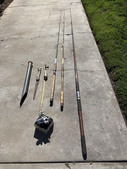3 Surf fishing poles, a reel and 3 pole holders$120Fresno, CA
