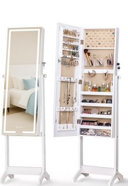 LED Mirror Jewelry Cabinet Standing Jewelry Armoire, 60" Full Length Mirror with Jewelry Storage, 3 Color Modes, 3 Adjustable Angles, Lockable Jewelry$80Land O' Lakes, FL