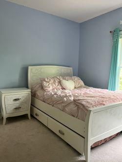 Rooms To Go White Bedroom Set – Bed w/ Trundle, Dresser, Nightstand + Mattresses$750Cary, NC
