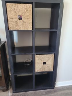 IKEA Kallax 2x4 Shelf Unit (Black-Brown) + 2 Seagrass Baskets$60Upland, CA