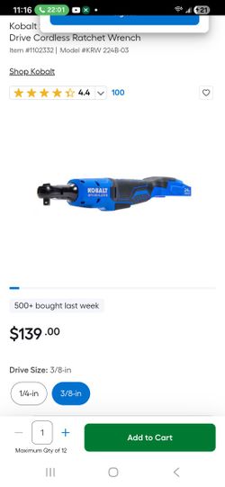 Kobalt 24-volt Variable Speed Brushless 3/8-in Drive Cordless Ratchet Wrench$100Los Angeles, CA