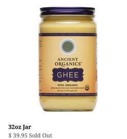 Ancient Organics 32 0z Ghee$25Castro Valley, CA