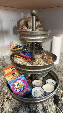 Galvanized Metal 3-Tier Serving Tray with Snacks$15Oak Lawn, IL