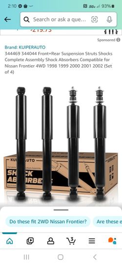 44 Front+Rear Suspension Struts Shocks Complete Assembly Shock Absorbers Compatible for Nissan Frontier 4WD 1 2000 2001 2002 (Set o$30Greensboro, NC
