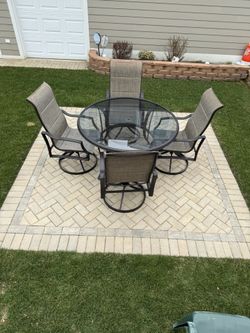 BEAUTIFUL PATIO TABLE WITH 4CONFORTABLE CHAIRS. TABLE MEASURES 52 INCHES. EXCELLENT CONDITION. WE ASSEMBLED IT A FEW WEEKS AGO.$350.00 OR BEST OFFER$350Chicago, IL