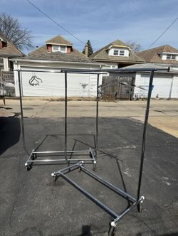 HEAVY DUTY ROLLING CLOTHES RACKS. 48 BY 60 INCHES. THEY CAN BE ADJUSTED TO 3 DIFFERENT HEIGHTS. WE HAVE 20 UNITS . $40.00 EACH OR BEST OFFER.$40River Grove, IL