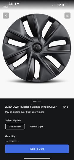 TESLA MODEL Y PREMIUM GEMINI DARK WHEEL COVER SET 19-INCH 2020-2024 4 PIECES OEM$180Issaquah, WA