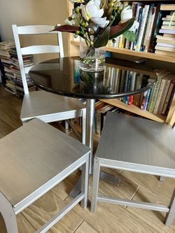 Very solid Real Solid Black Sparkling Marble, Small Table! Including 3 Wooden/silver Chairs! H”29.5/ 24” W$100Des Plaines, IL