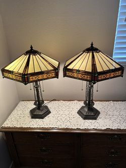 Pair of Vintage Astoria Grand Veatta Stained Glass Table Lamps Tiffany Style$160Glendale, AZ
