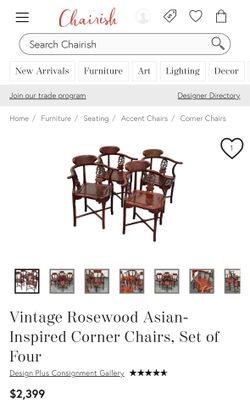 Set of Four Vintage Rosewood Asian-Inspired Corner Chairs$400Santa Monica, CA