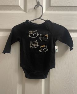 Brand New Baby Girl Black Cat Face Print Bodysuit Size 0-3 Months $4West Palm Beach, FL