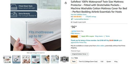 Waterproof Mattress Protector For twin bed$20Redmond, WA