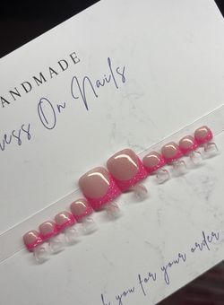 Toe press on nails pink French tip glitter nude custom handmade gel$15Beaumont, TX