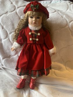 Brunette porcelain Christmas doll in red dress Vintage $20Los Angeles, CA
