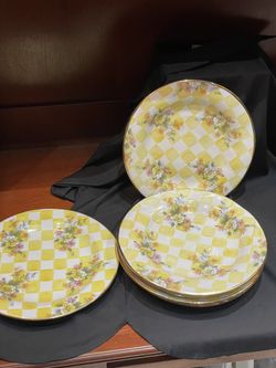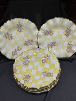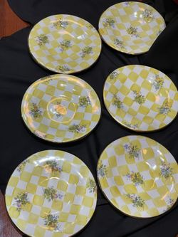 6 Mackenzie Childs Lemon Curd Yellow Honeymoon Dinner Plates Smooth Edge 12”$650Rcho Santa Fe, CA