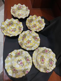 6 - Set Of Small Bowls Mackenzie Childs Lemon Curd Bowl Honeymoon Retired 6”$525Rcho Santa Fe, CA