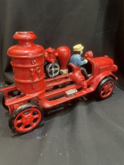 Vintage Red Cast Iron Pumper Fire Engine Truck W/ Conductor 8" Moving Wheels$60Rcho Santa Fe, CA