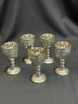 VINTAGE EPNS SILVER PLATE CORDIAL/SHOT 2-11/16" MINI GOBLETS SET OF 5$50Rcho Santa Fe, CA