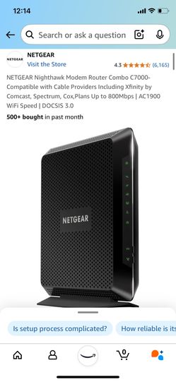 NETGEAR Nighthawk Modem Router Combo C7000-Compatible with Cable Providers Including Xfinity$100Richmond, CA