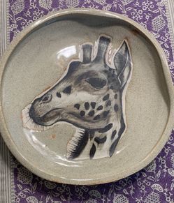 Large Handmade Giraffe Themed Ceramic Pottery Round Serving Platter Plate$20Naperville, IL