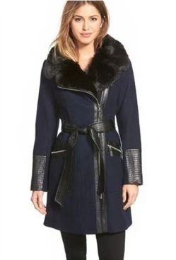 Via Spiga Kate Coat Navy Blue with Black Trim Faux Fur$45Blawnox, PA