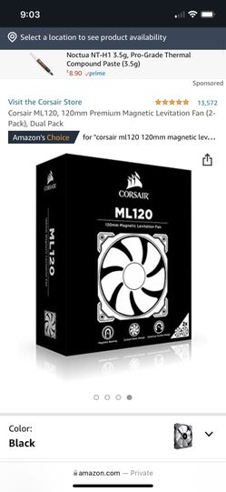 Corsair ML120, 120mm Premium Magnetic Levitation Fan (2-Pack), Dual Pack$30Bothell, WA