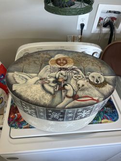 Huge Vintage Wood Shaker Lidded Box Snow Angels $125Cowpens, SC