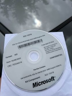 New SQL Server 2022 Standard 24 Core License, unlimited User CALs PHYSICAL ITEM$200Florence, NJ