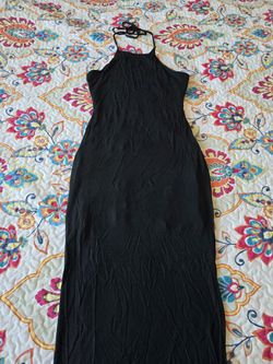 Black halter tie neck maxi dress with open back and slit. Lined. Not sure of the size, its stretchy material and fits small/xs.$25Union City, CA