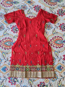 Red 3 piece indian punjabi bollywood patiala salwar suit, beautiful textured fabric, thread and beadwork embroidery, large lightweight dupatta.$200Union City, CA