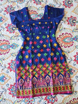 Blue 3 piece indian punjabi bollywood patiala salwar suit, with phulkari design, threadwork embroidery, large lightweight dupatta$200Union City, CA