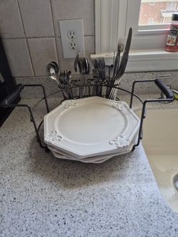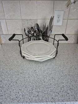 White Dinner Plates and Silverware In a Holder$15Stone Mountain, GA
