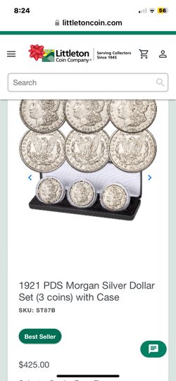 1921 PDS Morgan Silver Dollar Set (3 coins) with Case$375San Diego, CA