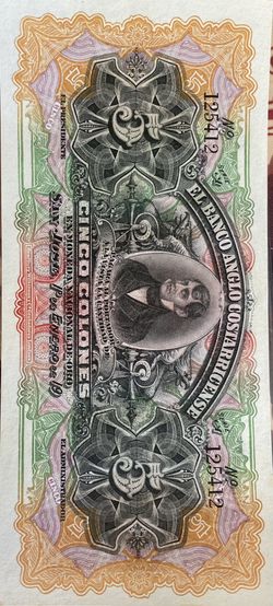 1900 Costa Rica 5 Cinco Colones El Banco Anglo Costarricense Banknote - Rare Vin$75San Diego, CA