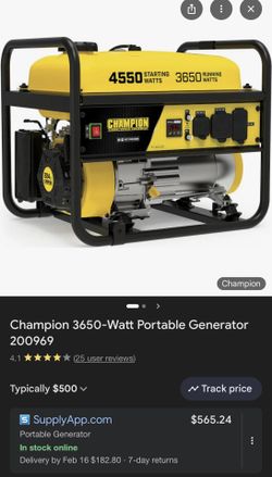 Champion 3650 Portable Generator with added $70 “Wheel Kit” (used only once for Ian)$275Cape Coral, FL