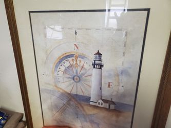Lighthouse print in oak frame . Nice!$45Sunset Beach, NC