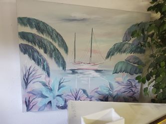 Sailboat tropical scene canvas print$45Ocean Isle Beach, NC