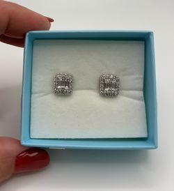 10 K White Gold Earrings, Studs With Baguettes And Round Diamond$1,000Miami, FL