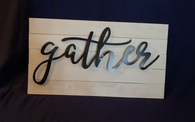 GATHER Metal Wall Art Word Quote Sign On Wood Sections Decor Beautiful 22” x 12”$15Columbus, NJ