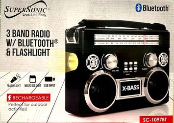Supersonic SC-1097BT 3 Band Radio With Bluetooth, Flashlight AM/FM/SW$30Moreno Valley, CA