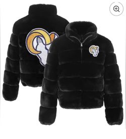 NFL Women's Cuce Black Los Angeles Rams Faux Fur Full-Zip Bomber Jacket$220Battle Ground, WA