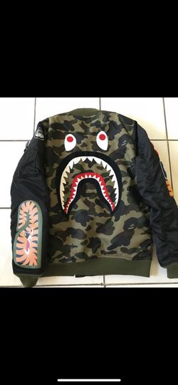 Bape MA-1 Shark Bomber jacket Size large New 1st Green Camo Rare Supreme Box Logo Bape Shark Hoodie BBC Billionaire Boys Club The Hundreds Stussy Logo$850Los Angeles, CA
