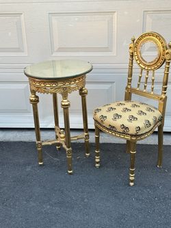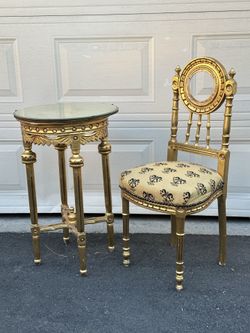 Vintage French style Hollywood regency Gold Leaf Vanity Chair And Side Table with mirror on top $267.00 EACH Pick up in Glendale $267Glendale, CA