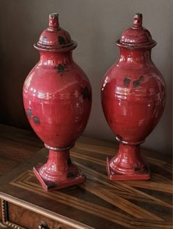 Pr. Vintage 1970s Italian Red Ceramic Temple Jars with Bases$85Sumner, WA